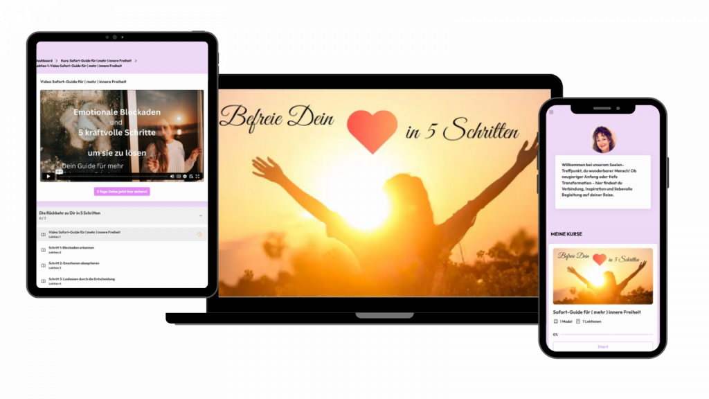 Seitdem begleite ich Menschen dabei, sich selbst zu erkennen, ihre alten Muster zu verstehen und die Verbindung zu ihrem Herzen wiederzufinden.